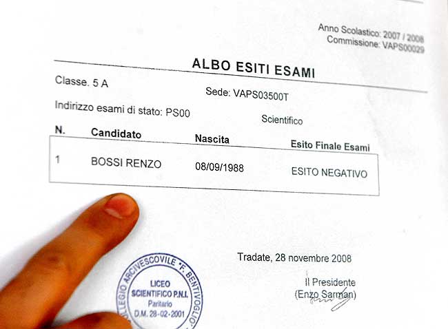 (...) a cui si era autoinvitato per celebrare la recente elezione al Consiglio regionale della Lombardia (...) alla precisa domanda dell'intervistatrice "perchè è stato bocciato 3 volte ? " replico:" gli impegni politici mi hanno distratto dagli studi..." conclusione inevitabile:papa Umberto ad un preciso  certo momento della sua vita...coniugale si distrasse per un attimo, forse pensando a