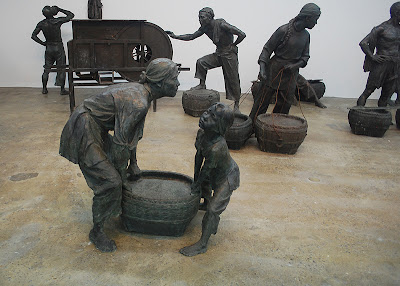 Hanno ricostruito un intero villaggio Cinese in bronzo raffigurandovi le principali personalità che lo occupavano,dovreste dapere che dopo il ritrovamento dell'esercito dell'imperatore in terracotta composto da migliaia e migliaia di figure a grandezza naturale i cinesi sono per cosi dire presi da un raptus megalomane (...) l'opera che vedete qui sotto è stata esposta in una biennale Cinese e mi pare a quello che ho capito che sia stata realizzata dagli allievi di un istituto d'arte,purtroppo il sito che mi ha fornito le immagini non riportava di più.